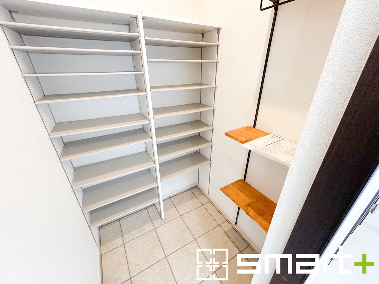 ~シューズインクロークのある玄関~ ・玄関横にシューズインクロークをご用意。 ・追加の靴置きとしてはもちろん、スキー・ゴルフなど趣味の用具の置場としてもご利用いただけます。