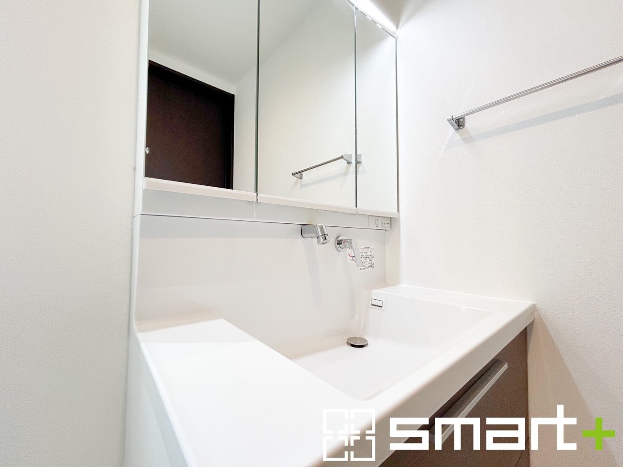 ~人気の三面鏡を採用~ ・洗面台は三面鏡仕様なので鏡の角度を変える事で頭の後ろの方までご確認可能です。 ・鏡の裏が収納になっておりますので、洗面台周りもスッキリと片付きます。