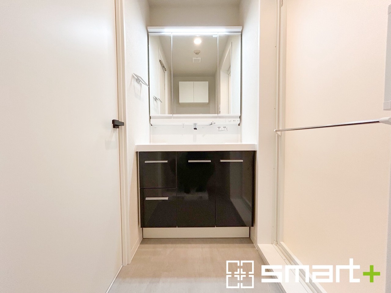~人気の三面鏡を採用~ ・洗面台は三面鏡仕様なので鏡の角度を変える事で頭の後ろの方までご確認可能です。 ・鏡の裏が収納になっておりますので、洗面台周りもスッキリと片付きます。