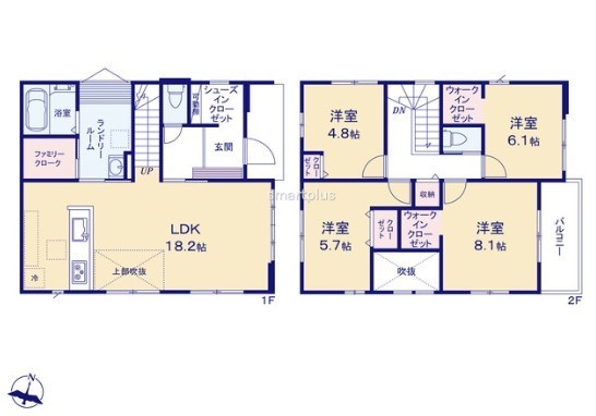 | 間取 | 4LDK + WIC×2、FC、SIC、ランドリールーム (LDK18.2帖、洋室8.1帖、洋室6.1帖、洋室5.7帖、洋室4.8帖) | ||