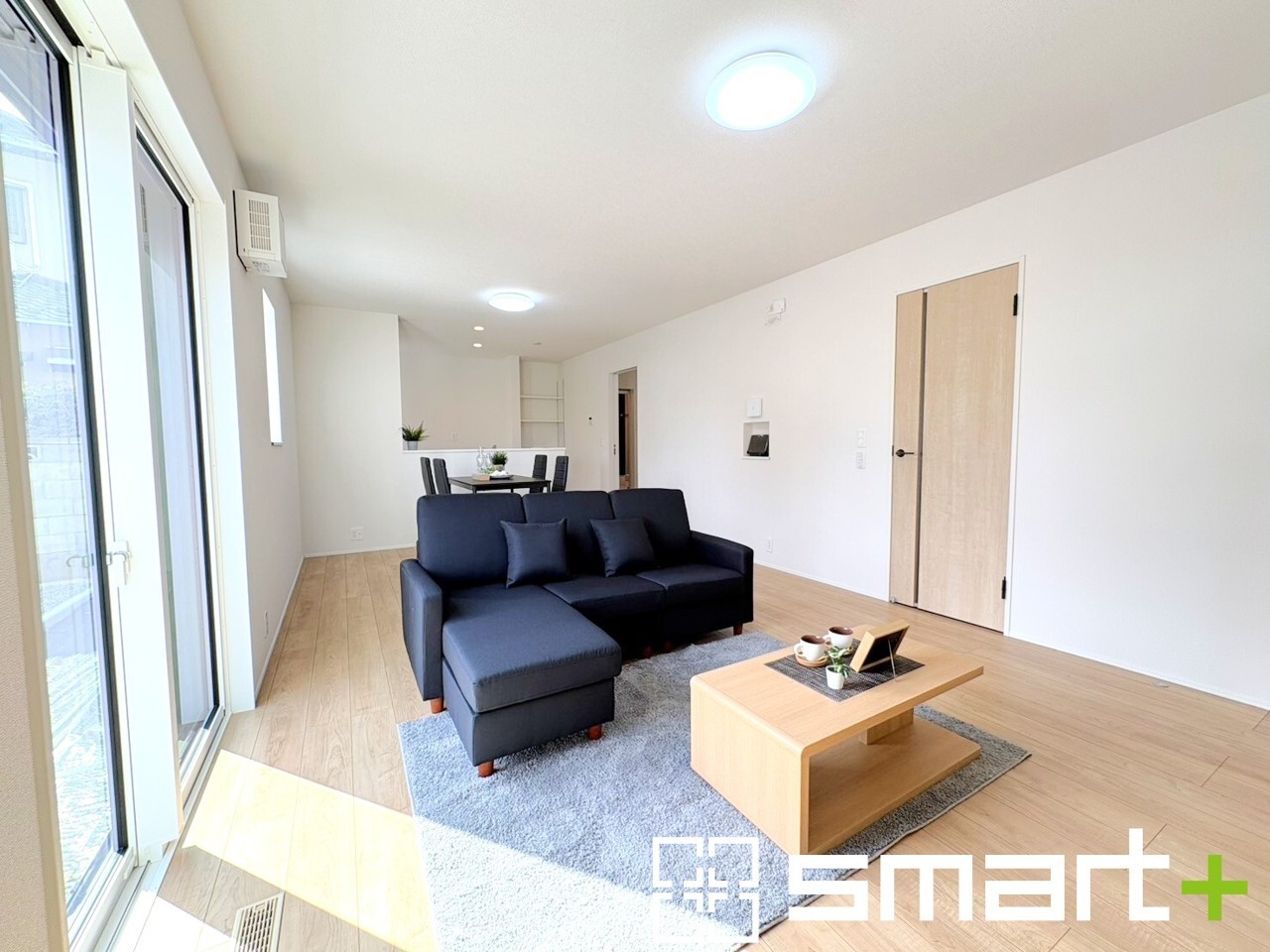 ~日当り良好のLDK~ ・穏やかな陽だまりに包まれる居心地の良いLDKは、ご家族が自然と集まる憩いのスペースに。 ・出来立てのお料理を運ぶのにも、食器の後片付けもラクラクなカウンターキッチン。
