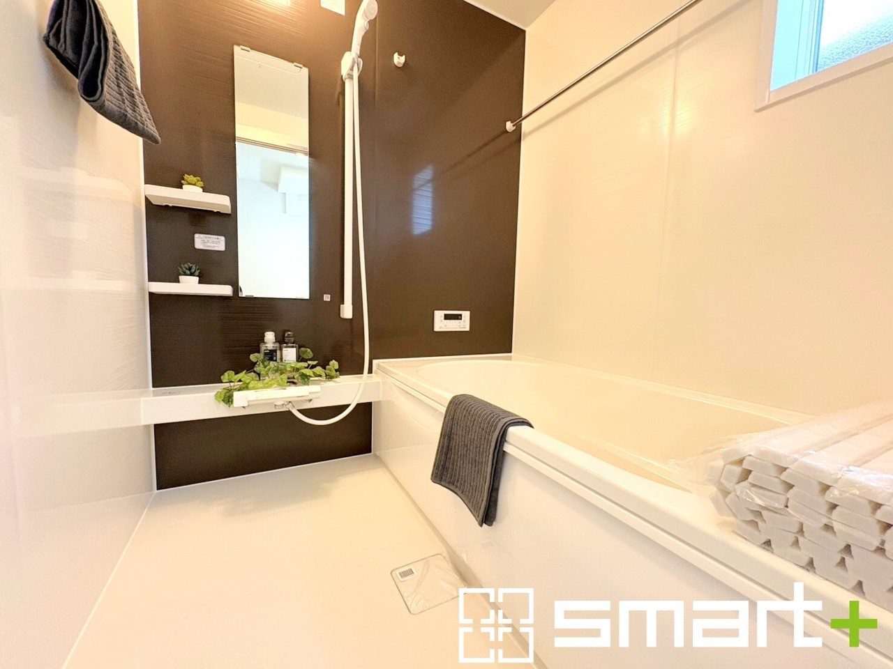 ~浴室乾燥機付きの浴室~ ・浴室には乾燥機が付いているので雨の日でも洗濯物を干すことが可能です。 ・水はけの良い床材など機能面も充実。マイクロバブルなどオプションもご相談くださいませ。