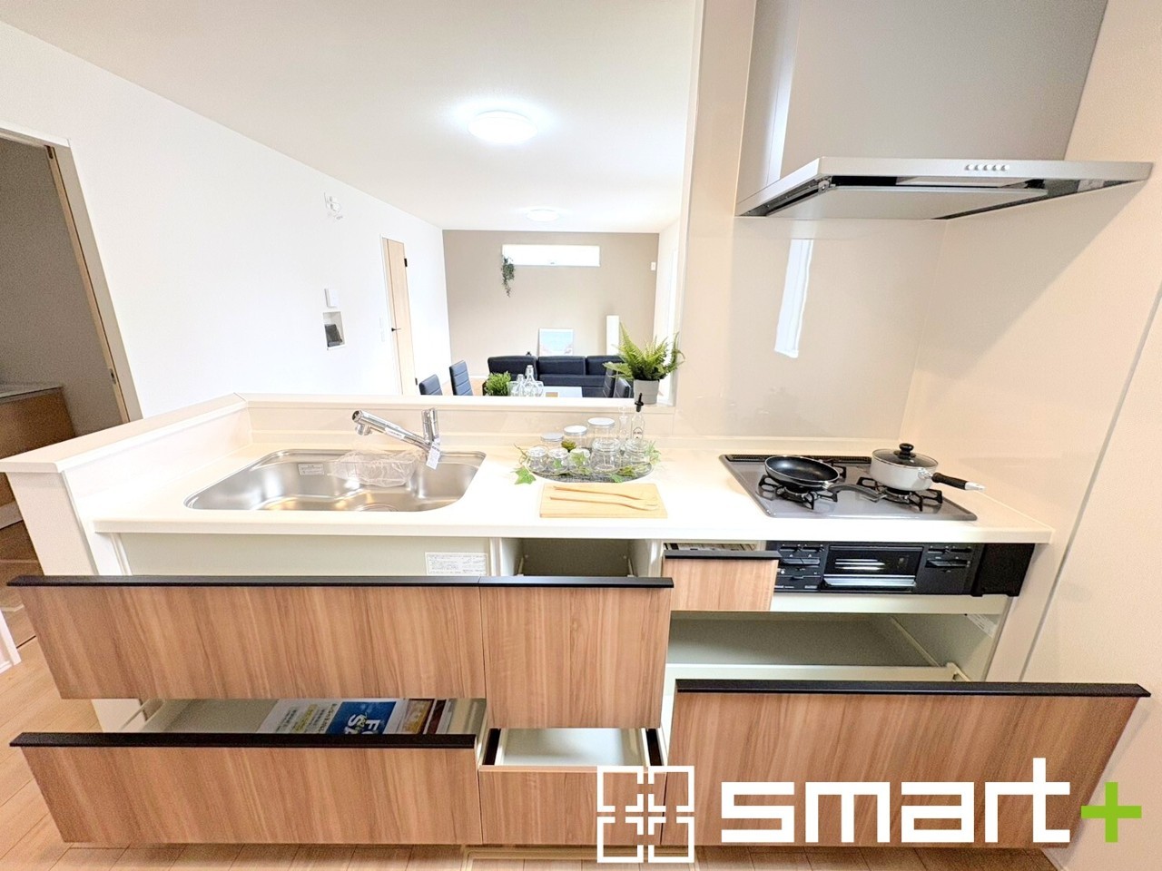 ~人気のカウンターキッチン~ ・キッチンには余計な柱が無いので、リビングが見渡せ開放感のある造りとなっております。 ・蛇口には浄水器が内蔵されるなど機能面でも優れたキッチンです。