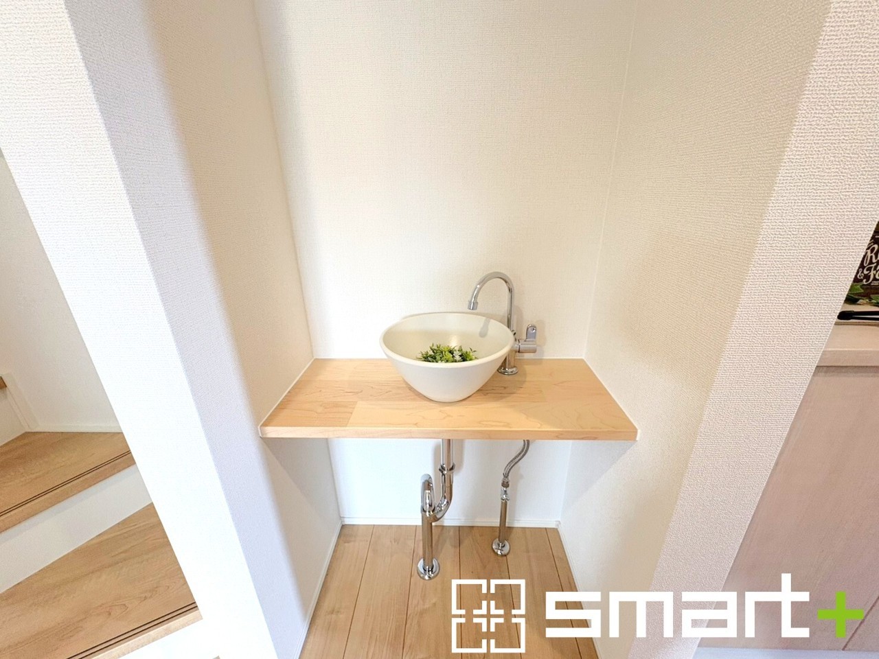 ~玄関にも洗面台~ ・玄関に洗面台を設置することで、帰宅後すぐに手洗いができるので家にウイルスを持ち込まずに済みますね。 ・子供の砂遊びなどの泥汚れも洗い流すことができて便利です。