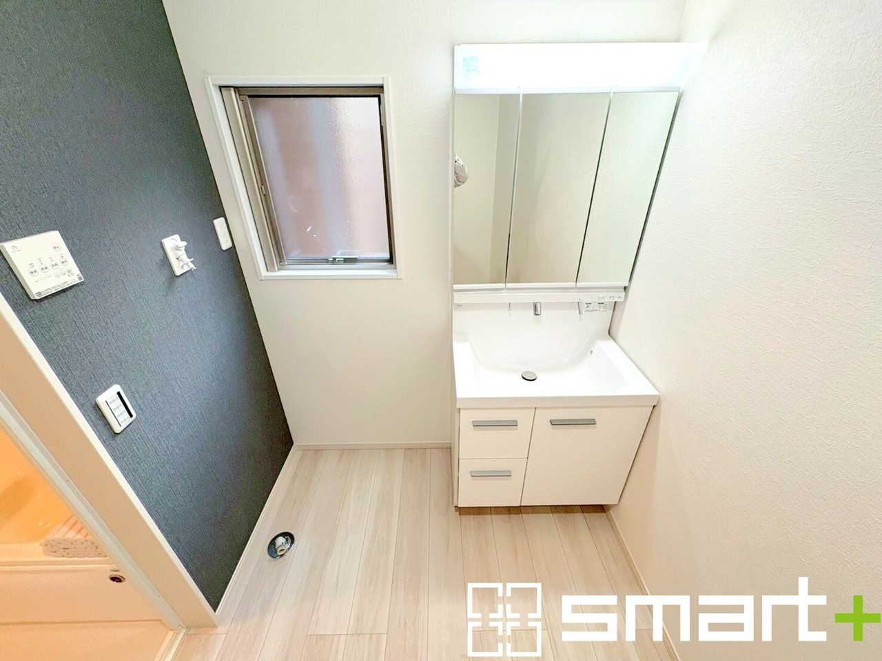 ~人気の三面鏡を採用~ ・洗面台は三面鏡仕様なので鏡の角度を変える事で頭の後ろの方までご確認可能です。 ・鏡の裏が収納になっておりますので、洗面台周りもスッキリと片付きます。